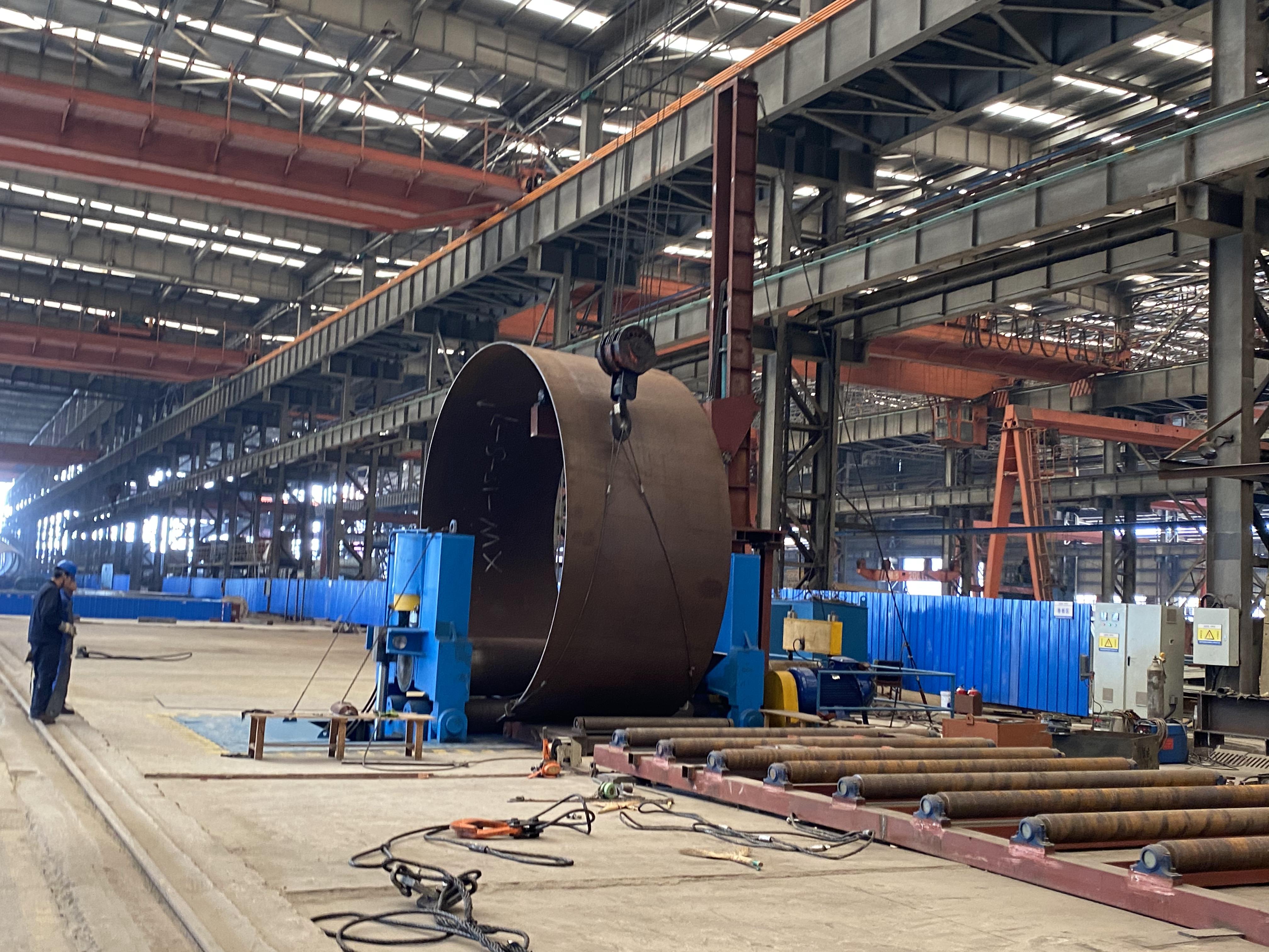 在化工設備制造過程中,圓通節卷曲是鋼板的主要成型工藝之一,液壓四輥卷板機可用于將常溫的鋼板卷成圓筒形。